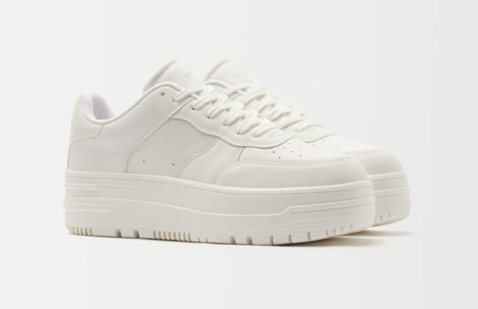 Se trata de un tipo de calzado con plataforma en base blanca. Un complemento que podremos llevar con todo nuestro armario y está a la venta a un precio realmente bajo. Un poco de plataforma siempre viene bien. El hecho de que tenga unos centímetros de más serán siempre bienvenidos. Podemos alargar las piernas y estilizar la figura sin renunciar a la comodidad de este tipo de calzado. El precio de venta es de 22,99 euros.