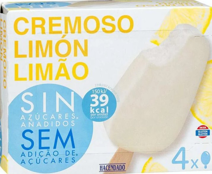 El helado cremoso de limón sin azúcar tampoco se puede comprar en los diferentes Mercadona. Este helado con sabor a limón y sin calorías era uno de los productos más típicos del verano para los usuarios que frecuentan esta cadena de supermercados. Se vendía bajo la marca de Hacendado y era una caja que contenía 4 palitos helados. En la caja podíamos ver que cada unidad tenía 39 calorías.