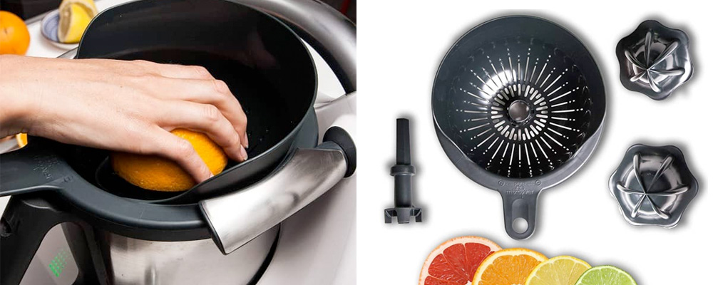 Compatible con Thermomix TM5 y TM6. Puedes elegir la forma simple de exprimir porque gracias a la alta velocidad y al potente motor, podrás exprimir todo el jugo en segundos y es seguro y fácil de usar, hasta puedes hacer limonada casera.