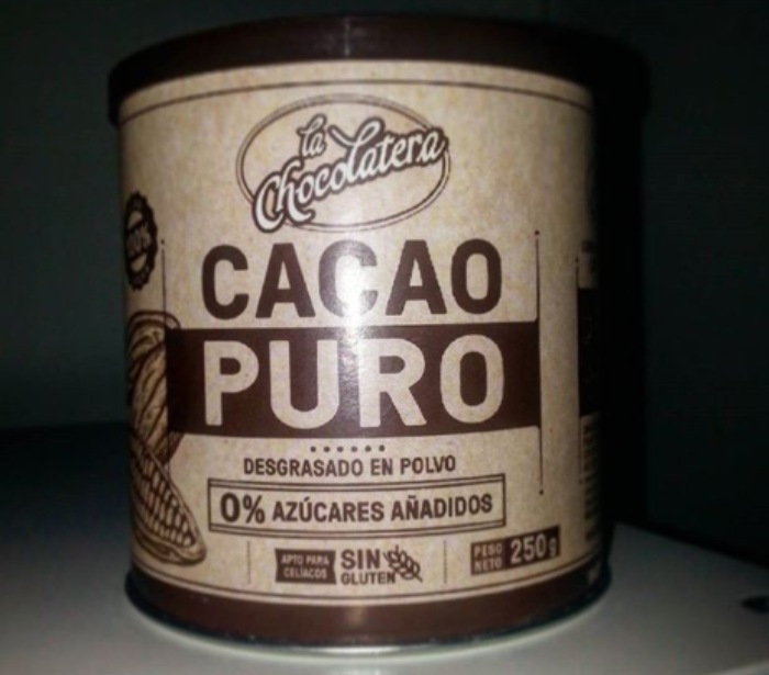 Se trata del cacao puro desgrasado en polvo con 0% de azúcares añadidos, sin gluten y, por supuesto, sin azúcar. Es 100% cacao. Está fabricado por chocolates VALOR y se presenta en un formato de 250 gramos por un precio de 2,70 euros.