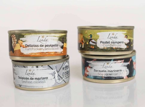 Cuentan con dos líneas. La de mar tiene dos opciones: la «Zarzuela marinera» con atún y calamar y el «Salpicón de marisco» con atún y gambas. La opción de tierra ofrece el «Pastel campero», que es un guiso de pato y vacuno, y las «Delicias de pavipollo”, que es una combinación de pavo y pollo.