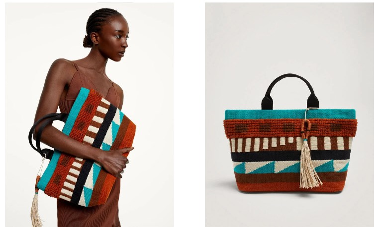 Este bolso tipo shopper, elaborado en un bastante colorido Jacquard es probablemente lo que necesites, viene con sistema de cierre por cremallera y asas de mano, aunque también trae una asa para que lo puedas utilizar como bandolera, que es extraíble y ajustable. Posee en la parte interior un bolsillo que también tiene cremallera y un adorno colgante tipo tribunal. ¿Su precio?, 12,99 euros, en rebaja.