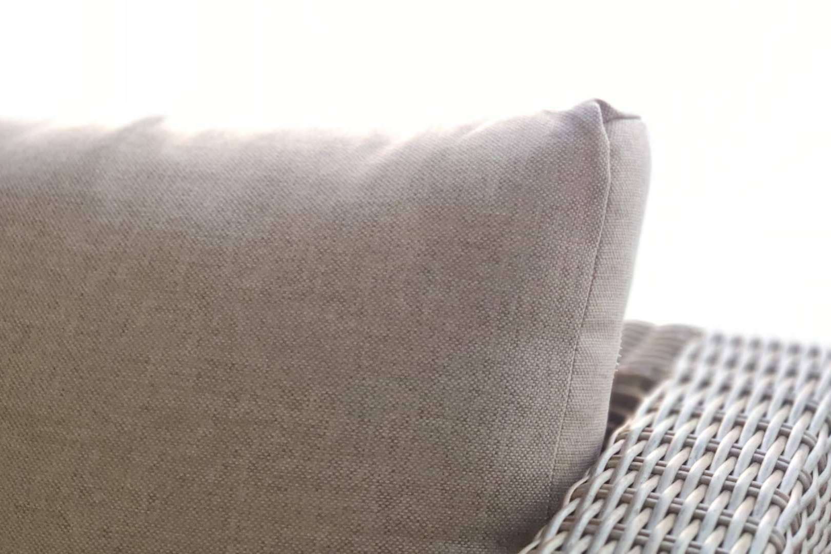 Muebles Exterior ofrece en su catálogo sillas y mesas de jardín con una gran variedad de modelos, todos muy resistentes. Este es el caso del diseño semicircular hecho en ratán sintético; a diferencia de los materiales anteriores, este se adapta con facilidad a las altas temperaturas y es resistente a la humedad. En la mesa se puede colocar un cristal para darle un toque más sofisticado y añadir unos cojines, dependiendo del estilo que se quiera usar.