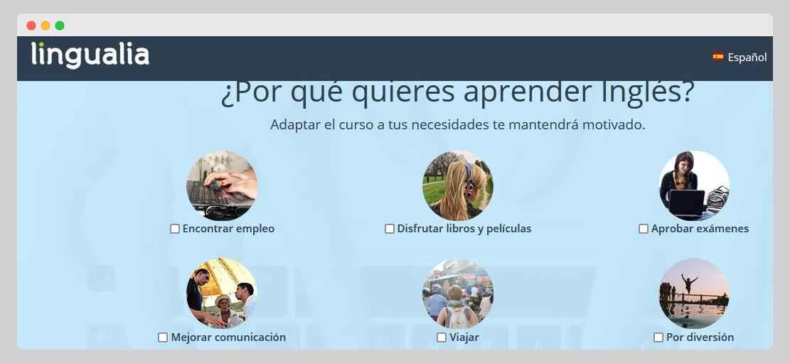 Esta plataforma solo tienen dos idiomas a elegir, español o inglés. Pero, por otro lado, tiene la ventaja de que podemos crear un plan de estudio personalizado totalmente gratis. Podemos definir cuántas horas queremos dedicarle a la semana, cuáles son los objetivos que buscamos (encontrar trabajo, entender canciones, viajar, etc.). Una vez que empezamos con las lecciones, nos va proponiendo palabras con definiciones, un contexto y su audio con la pronunciación.