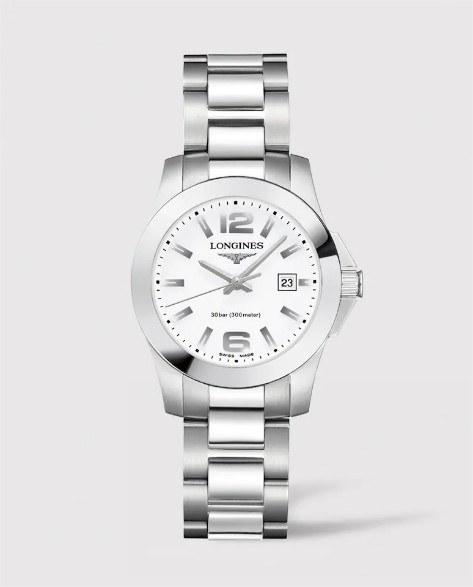 Y qué decir del Longines L33764166 Conquest, un modelo con acabados premium y que ofrece resistencia al agua, además de un brazalete de acero inoxidable pulido con triple cierre desplegable de seguridad y mecanismo de apertura mediante pulsador.