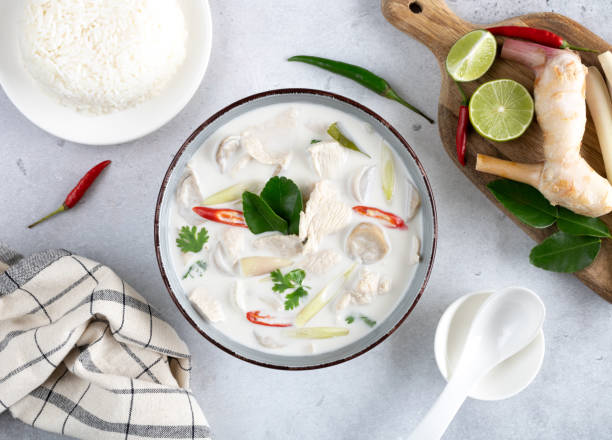 La sopa de coco tailandesa es tan deliciosa como intrigante, con sabores ligeros pero atrevidos. Aunque es un plato contundente, sólo se tarda 30 minutos en prepararlo, lo que hace de esta sopa una comida sencilla perfecta para las cenas entre semana. La comida tailandesa siempre lleva algo de picante, pero si no le gusta este sabor en casa, no hay problema en eliminar el chile de la receta. La combinación perfecta de cuatro sabores -salado, dulce, ácido y picante- hace que este plato sea irresistible.