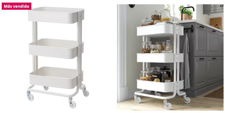Resulta ideal para tu cocina, donde puedes aprovechar sus tres bandejas para colocar de todo, desde frutas y verduras, hasta utensilios, pero si de lo que se trata es de que tienes un desastre en el baño, porque no tienes donde colocar los cosméticos o los productos que usas para el baño, el carrito Råskog es la solución que has estado buscando y va camino a convertirse en uno de los imprescindibles de Ikea.