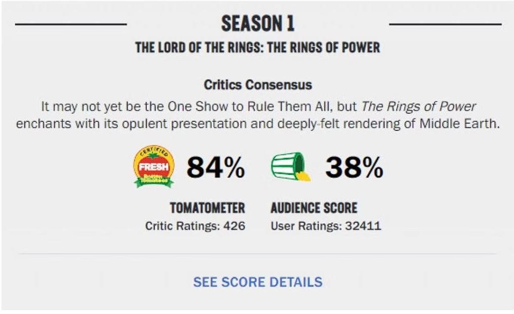 En este caso, nos encontramos una enorme disparidad de opiniones en Los anillos de poder, sobre todo si comparamos a los críticos profesionales y a los espectadores de la propia serie en Amazon Prime.