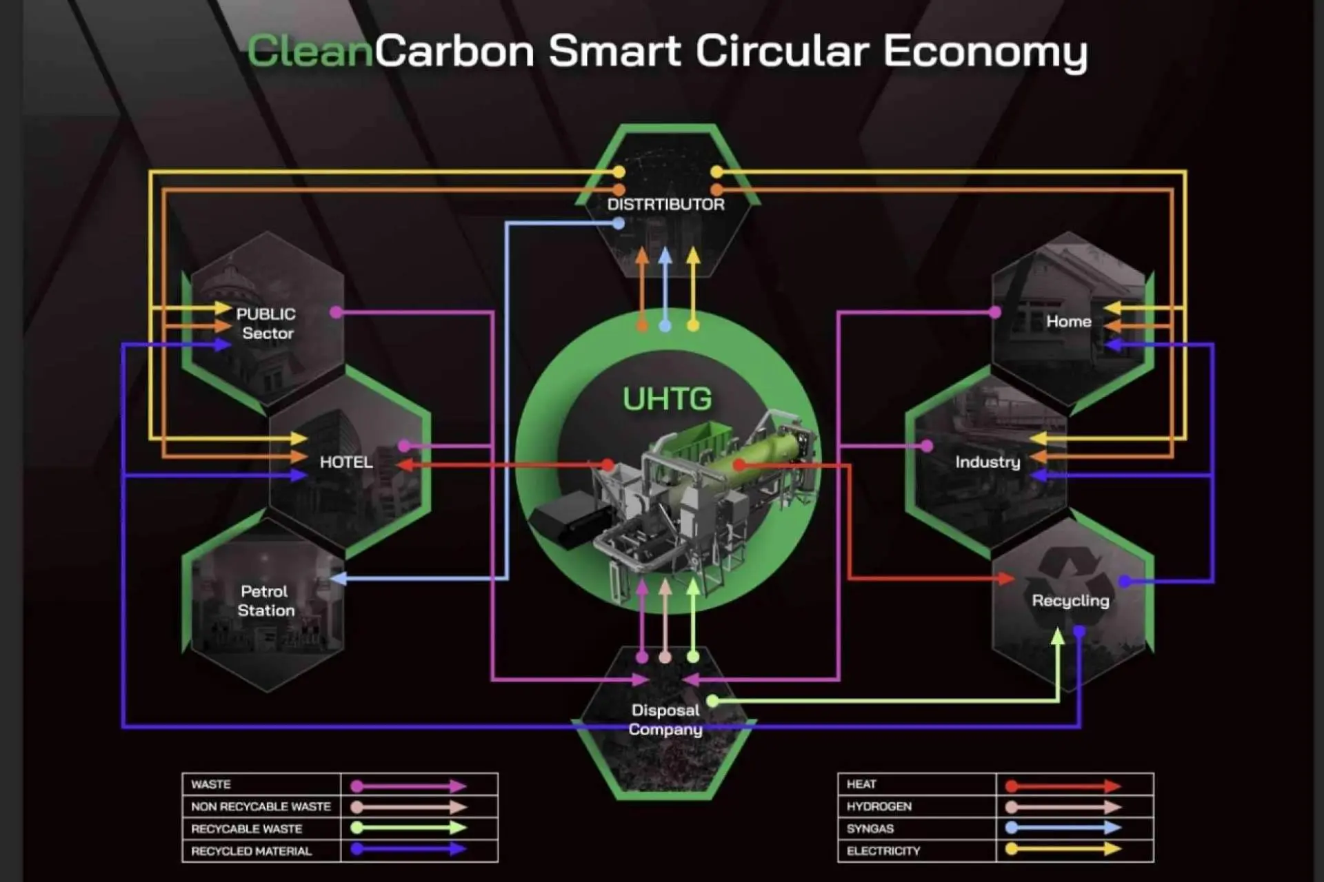 El punto central del proyecto CleanCarbon es la conversión de residuos en energía. Mediante el uso de una tecnología avanzada, aprovechan la gasificación a ultraalta temperatura (UHTG) como materia prima para este propósito. Es lo que la firma describe como el proceso de explotación de los residuos de próxima generación.