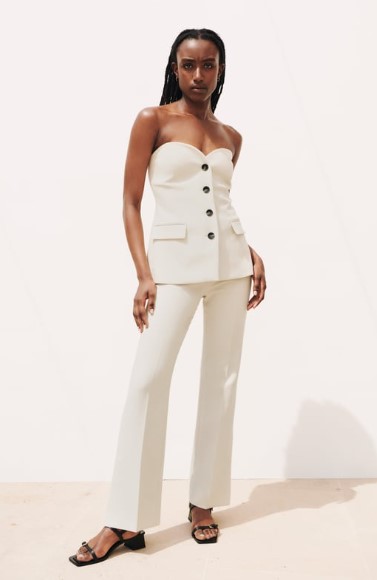 Zara tiene estos pantalones beige de cintura alta, con falsos bolsillos ribeteados en la parte trasera. Pernera recta y bajo con aberturas laterales. Cierre delantero con cremallera, botón interior y corchete metálico. Estos pantalones son perfectos para combinarlos con una camiseta de manga larga y zapatillas deportivas, o ponerlos por encima de tu body favorito durante los meses de invierno. Puedes comprar este producto con un descuento del 56% y su precio final es de 12,99 euros.