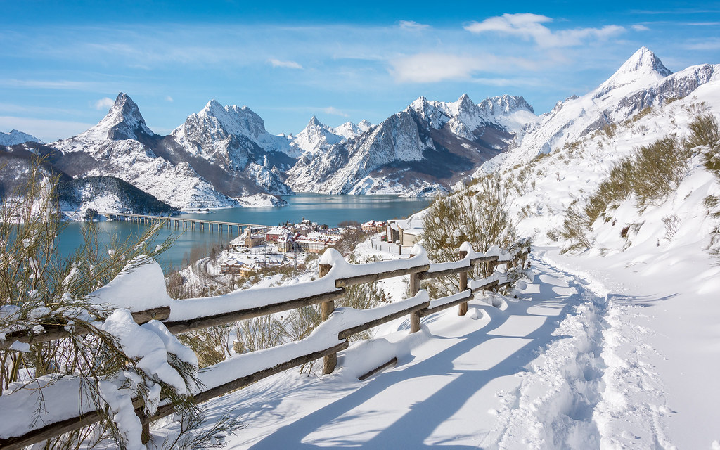 Volvemos a Castilla y León para ver Riaño, un pueblo de la provincia de León bastante conocido. Este pueblo tiene una auténtica estampa de cuento, bañada por su embalse (que sepultó el antiguo pueblo) y rodeada de las montañas del paraje de Valcayo. Debido a su situación y su situación en altura, cae nieve muy a menudo.