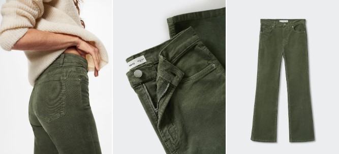 Están disponibles en Mango con cinco bolsillos con trabillas para que los lleves a tu gusto. El cierre de cremallera y botón garantiza que se mantenga en su lugar. Y los cortes bootcut y flare le dan al look una silueta moderna. ¡Obtén el tuyo ahora por sólo 17,99 €!