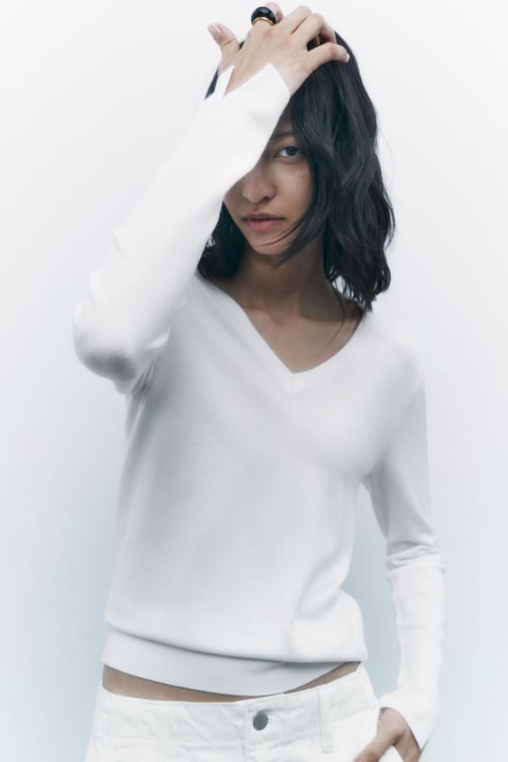 El jersey básico es un must en cualquier fondo de armario, porque es una prenda que va a poder utilizar en todo tipo de looks. En Zara puedes conseguir este sencillo, pero atractivo diseño con escote de pico y manga larga con un detalle de abertura en el puño. Está hecho con un tejido mezcla de viscosa, nailon y elastano, así que es una prenda ligera, con una caída bonita y elegante. Ideal para conjuntos minimalistas, para el día a día en la oficina. Lo tienes en varios tonos, pero el blanco es el color estrella de la temporada. Llévatelo por 22, 95 euros.