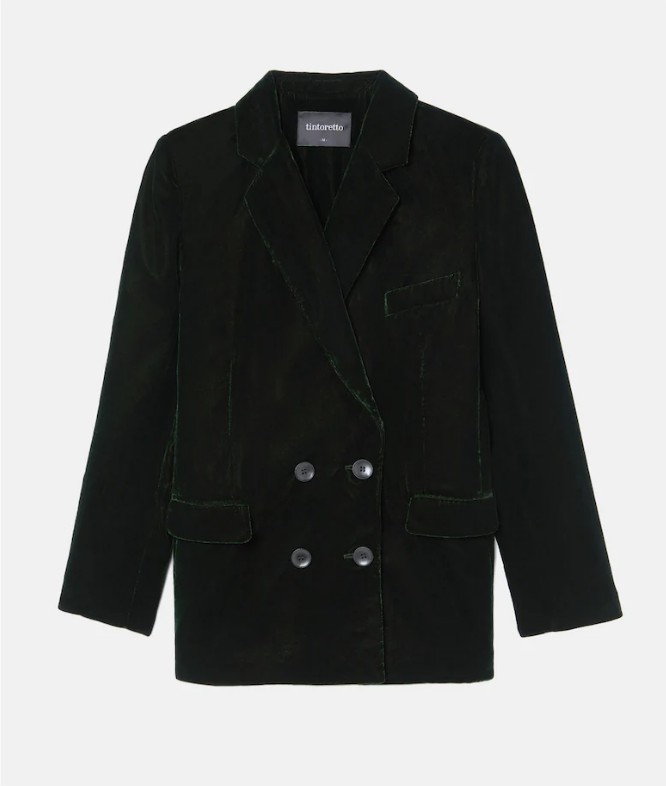 Y qué decir de este Blazer de traje de terciopelo con solapa, cierre de doble botonadura, bolsillos frontales con tapete para lucir un aspecto arrebatador y evitar el dichoso frío.