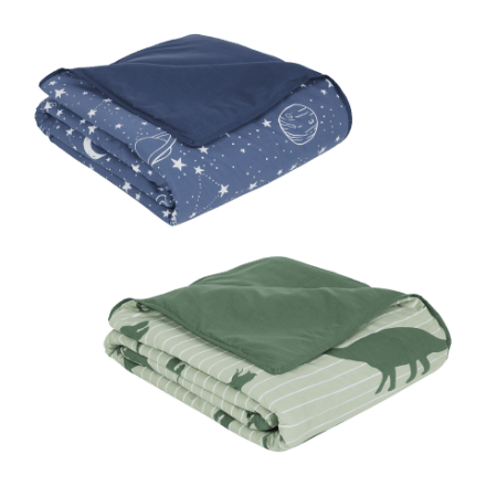 Este saco nórdico es perfecto para los más pequeños, tanto por su estampado alegre como por su diseño. Es una funda muy práctica, hecha en 75% algodón y 25% poliéster, con un cierre de cremallera para el edredón o el nórdico quede bien sujeto en el interior y no se mueva. La funda tiene unas medidas de 90 x 200 cm y se incluye una funda de almohada de 40 x 70 cm. El relleno está incluido y es extraíble. Se puede elegir entre dos modelos, uno en verde con estampado de dinosaurios y otro en azul con detalles de estrellas. El precio de cada uno en Aldi es de 29,99 euros.