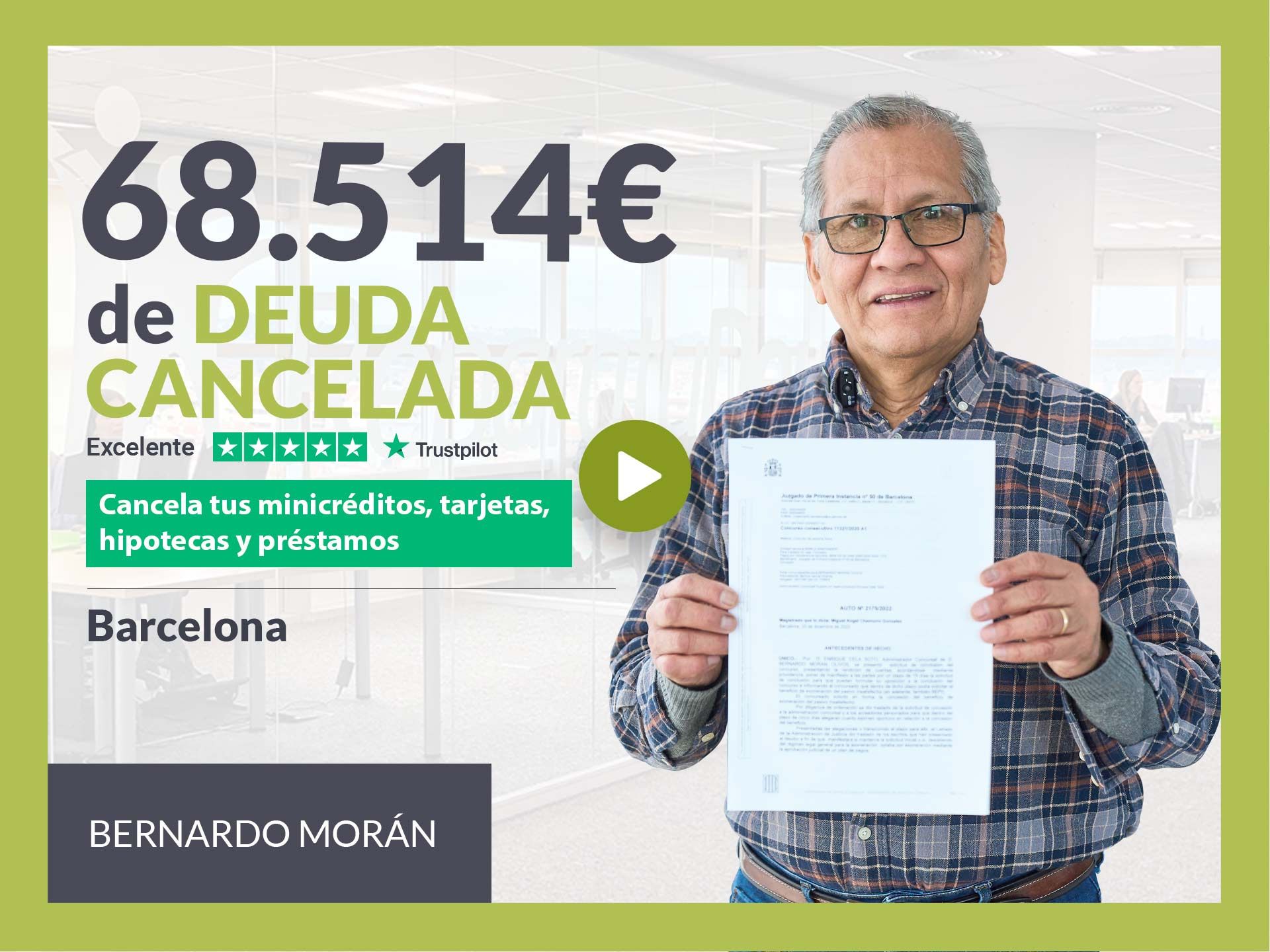 Repara tu Deuda Abogados, despacho de abogados líder en España en la tramitación de la Ley de Segunda Oportunidad, ha logrado una nueva cancelación de deuda en Barcelona (Catalunya). Mediante la gestión de Repara tu Deuda Abogados, el Juzgado de Primera Instancia nº50 de Barcelona (Catalunya) ha dictado exoneración del pasivo insatisfecho en el caso de Bernardo Morán, que había acumulado una deuda de 68.514 euros a la que no podía hacer frente. VER SENTENCIA