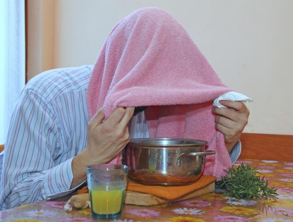Inhalar vapores de eucalipto puede proporcionar un gran alivio a las vías respiratorias. El eucalipto, al hervirlo, desprende un vapor perfumado con efectos descongestionantes. Basta con hervir unas hojas de eucalipto y dejar la cacerola en la estancia, o cubrirnos con una toalla para inhalar los vahos directamente, respirando profundamente durante unos 10 minutos o hasta que sintamos que se despeja la congestión nasal.