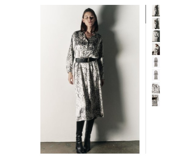 El bajo con aberturas laterales y el cierre frontal con botones hacen que sea entre los vestidos de Zara una elección única para tus looks más deseados. ¡Compra ahora este vestido satinado estampado serpiente por solo 39,95 EUR!