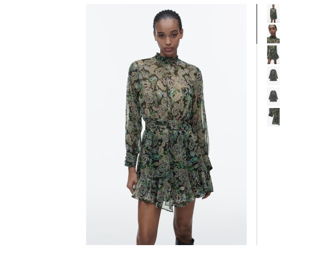 ¡Atrévete a lucir elegantemente con este vestido corto estampado de la colección de vestidos de Zara! Está confeccionado con tejido de alta calidad, que te brindará comodidad y seguridad todo el día. El diseño con cuello subido, volante y manga larga le da un toque moderno y único a tu look.