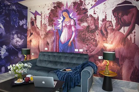 Paredes transformadas en tableros de ajedrez, inmensas Venus de Botticelli acompañando un romántico despertar, descubridores observando el nuevo mundo y astronautas emulando la última cena del redentor, son algunas de las implantaciones que Rizoma Architetture ha hecho allí.