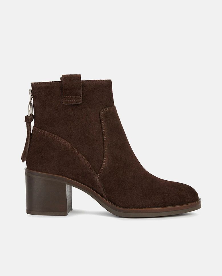 4Botines de mujer en marrón lisos con cremallera trasera y tacón bloque
