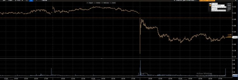 Los analistas consultados por MERCA2, no obstante, se muestran divididos debido a los escenarios que se abren justo en soportes. Por un lado, el hueco bajista dejado el pasado viernes, cercano al 1%, derivó en una caída del 7% que recuperó instantes después. El motivo de este hundimiento pudo deberse a un error en una orden, un ‘fat finger‘ que suele darse con mayor frecuencia de la prevista. No obstante, pese a la recuperación del inicio de la jornada, el valor continuó con el desplome hasta situarse en el crucial soporte mencionado.