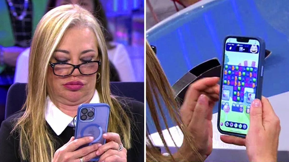 Belén Esteban fue fotografiada jugando Candy Crush mientras sus compañeros discutían el tema del día. «¡Belén!», se les puede escuchar advirtiéndole. «¡Ya lo se!» ella respondió y todos los demás se rieron mientras se ponía las manos en la cara y se rendía en el juego.