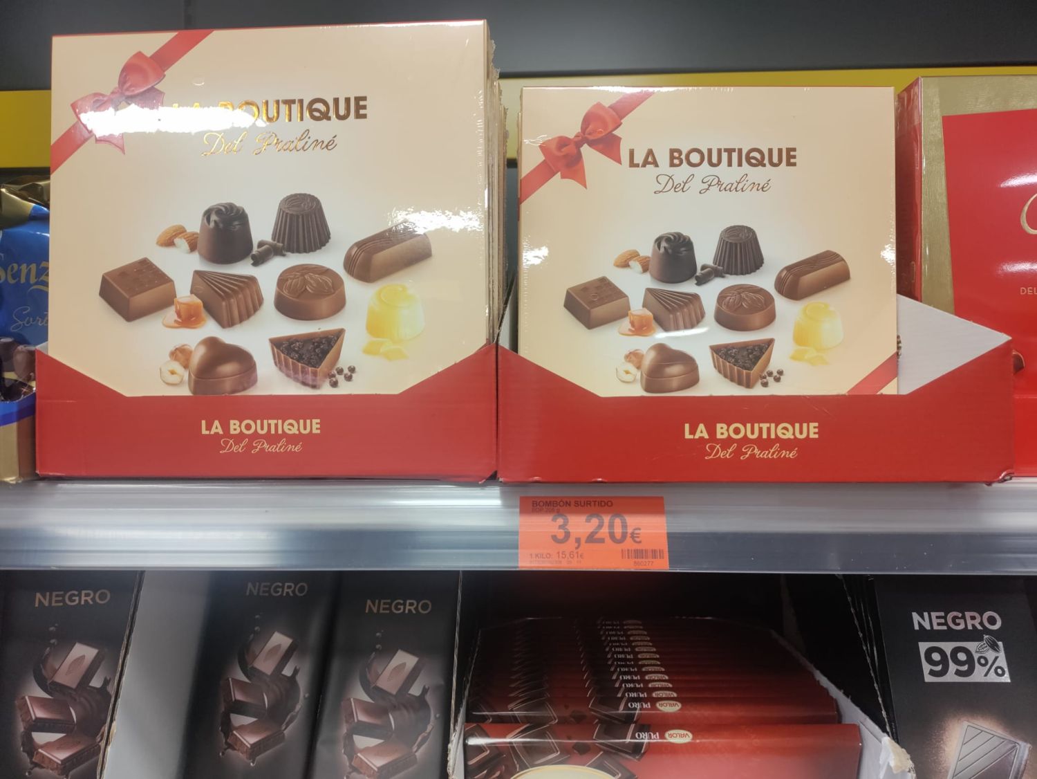 Otro regalo o detalle que no falta es la caja de bombones, ya que endulzan la pareja y gustan a todos. En Mercadona lo saben, así que tienes este surtido de bombones de La Boutique del praliné. Vienen en una caja de 19 unidades, con 200 gramos cada una y con bombones de todas las variantes y clases posibles.
