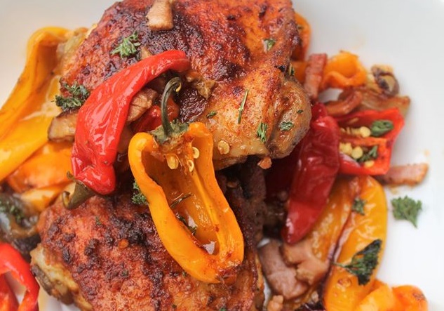 Llegados a este punto, se le suma a la receta el vino blanco, hasta que prácticamente cubra el pollo. Entonces, a fuego medio se espera a que todo se cocine con calma. Ya se sabe que con este tipo de platos, cuanta más paciencia se tenga, mejor sabrán después. El líquido irá poco a poco consumiéndose y dándole sabor tanto a la carne, el principal ingrediente de la receta, como a los pimientos y a los ajos.