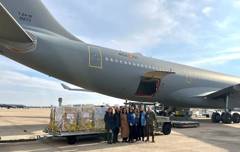 La carga del material se ha producido este martes en la base aérea de Torrejón de Ardoz y ha