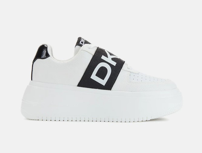 7Zapatillas de mujer en blanco bajas tipo basket con elástico logotipado y plataforma