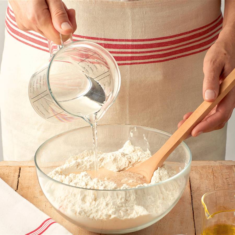 Coge un bol y mezcla la harina de garbanzos, la harina y una pizca de sal. Bátelo todo hasta formar una mezcla homogénea, ya que no puede quedar ningún grumo que estropee tu tortilla de patatas. Como ves, el ingrediente clave de esta tortilla de patatas sin huevos es la harina de garbanzos, un producto repleto de propiedades beneficiosas. Además de ser rica en fibras y proteínas de origen vegetal, esta harina contiene minerales como magnesio y potasio, ácido fólico y lecitina, que ayuda a que el organismo procese mejor las grasas ingeridas.