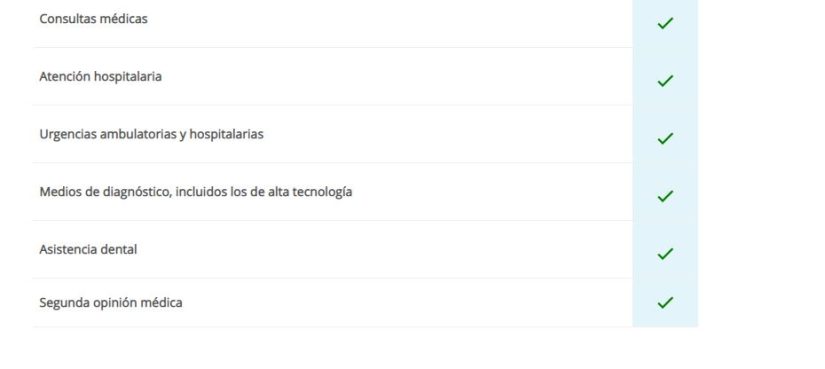 El seguro ofrece “consultas médicas, atención hospitalaria, urgencias ambulatorias y hospitalarias, medios de diagnóstico y segunda opinión médica