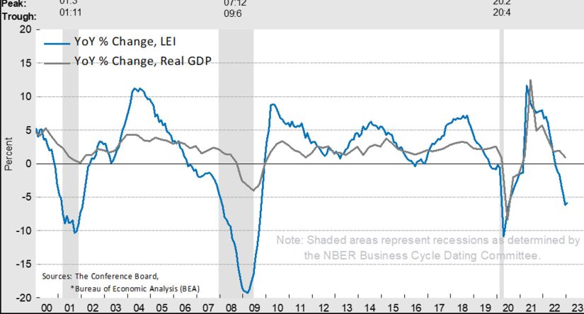 Ni aterrizaje suave ni esquivar la recesión. La economía estadounidense se encamina a una profunda caída, según marca el índice adelantado Leading Indicator de la Conference Board. Este panel ha registrado su décimo mes de recortes consecutivos y registra su cuarto nivel más bajo desde 2021. Las anteriores lecturas negativas se saldaron con una recesión profunda, como el estallido de la burbuja tecnológica, la crisis de 2008 y la irrupción de la pandemia en 2020.