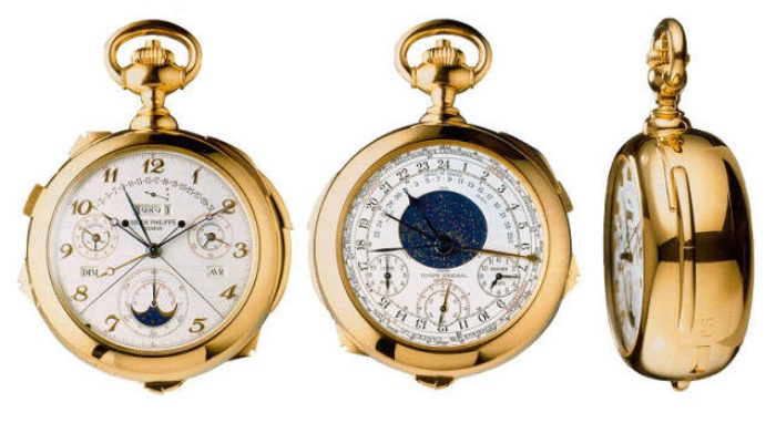 En el año 1989 se celebraba el 150 aniversario de la compañía Patek Philippe, una compañía sueca muy famosa por sus relojes. Tardaron 5 años en realizar el modelo del reloj y otros 4 años en la fabricación del reloj de bolsillo. Es por eso mismo por lo que su precio es tan elevado. Fue el reloj más complejo de fabricar en esa época.