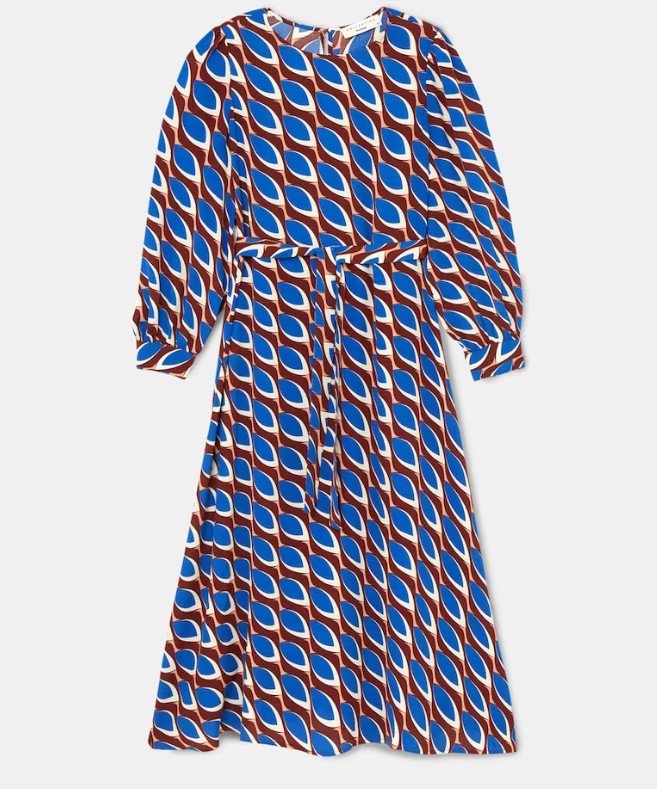 El estampado geométrico en variados colores es una locura, ya que tiene mil combinaciones perfectas para cualquier ocasión. La manga es larga y el cuello es redondo. Detalle de lazada que puedes usar en cintura o cuello, como más te guste. Si te interesa este vestido rebajado en El Corte Inglés, aquí lo encontrarás.