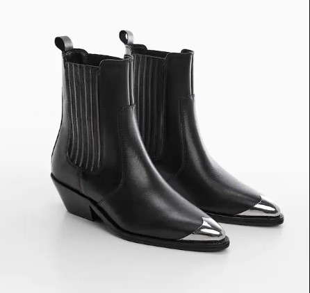 ¡Este botín de piel de estilo cowboy de Mango es el complemento perfecto para tu colección de calzado! Estan hechos con 100% piel bovina de primera calidad para proporcionar el mejor estilo y durabilidad. La punta metálica se combina con los paneles laterales de contraste para añadir un toque único a este estilo. El tacón bloque de 3cm es cómodo para usar durante todo el día. Estas botas tienen un precio de 89,99 € y son la mejor opción para un look de calle moderno con un toque de estilo clásico. Entonces, ¡Prepárate para causar una impresión con estas botas de Mango!