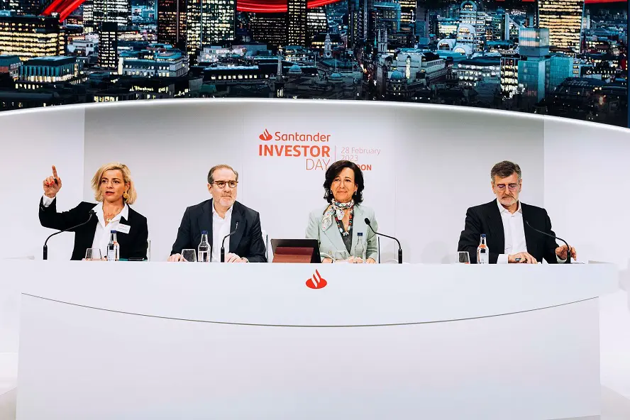 El equipo directivo de Banco Santander presentó en Londres el plan de crecimiento de la entidad para los próximos tres años (2023-2025). La presidenta, Ana Botín, el consejero delegado, Héctor Grisi, y el director financiero, José García Cantera, explicaron la estrategia y los principales objetivos financieros y comerciales del grupo, entre los que se incluyen “incrementar la política de retribución al accionista desde aproximadamente el 40% hasta en torno al 50% del beneficio entre 2023 y 2025, tanto con dividendos en efectivo como con recompra de acciones». También pretenden «lograr un retorno sobre el capital tangible (RoTE) del 15-17% en 2023-2025 y una ratio de eficiencia de aproximadamente el 42% en 2025, mantener la ratio de capital CET1 fully loaded por encima del 12% y alcanzar un crecimiento medio de doble dígito de media anual en la suma del valor contable tangible (TNAV) por acción más el dividendo por acción, un indicador clave de creación de valor».