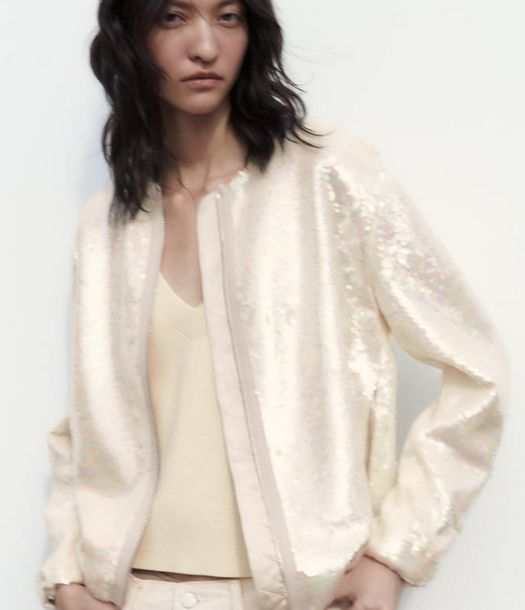 Nos ha llamado mucho la atención esta cazadora que puedes ver en la imagen. Y ya no solo porque tenga un diseño muy original a base de lentejuelas. También porque combina con cualquier otro tipo de prenda. Puedes comprarla en cualquier tienda de Zara por tan solo 79’95 euros.