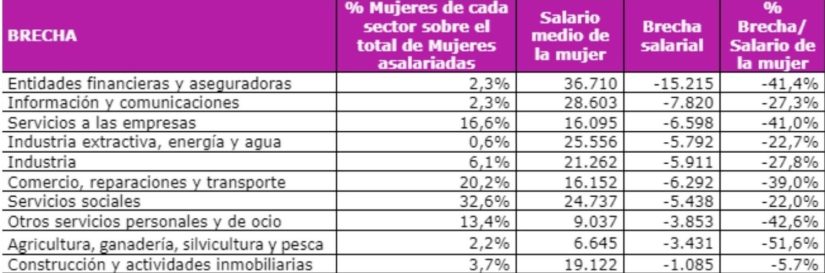 Además, la agricultura, ganadería, pesca y silvicultura, vuelve a ser el sector en el que menos ganan las mujeres en España: 6.645 euros cada año, en promedio, con una brecha salarial del 51,6%, la mayor de todos los sectores en términos porcentuales.