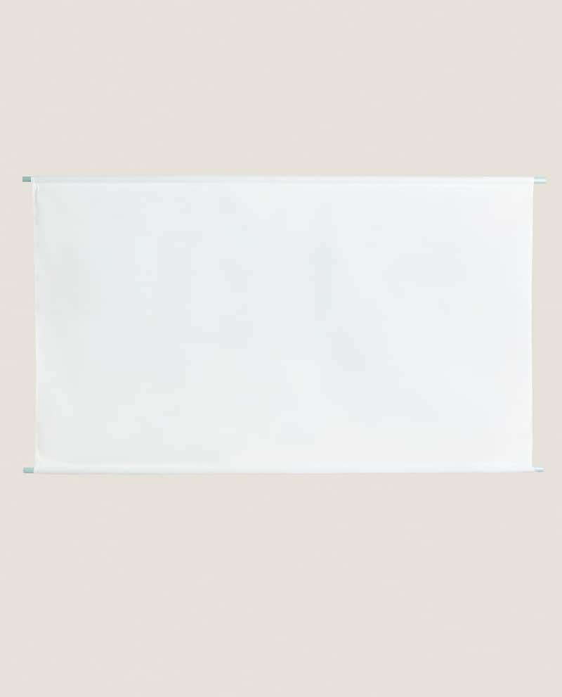 El complemento del proyector es una buena pantalla de proyección de cine. Se puede utilizar una pared blanca, pero es posible no tener esa opción, además con la pantalla podemos ver películas en cualquier zona de casa. Tiene unas medidas de 88 x 146 cm (alto x ancho) y se guarda enrollada en una bolsa de tela con asa para transportarla cómodamente y llevarla a cualquier sitio. La tienes en Zara a un precio de 59,99 euros.