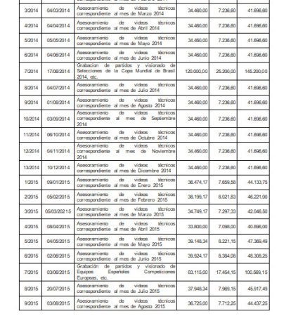 La Agencia Tributaria pidió al Barça las pruebas que correspondían con los conceptos de las facturas abonadas, grabaciones de equipos y selecciones de fútbol, durante la liga regular, Mundiales y Eurocopas. No obstante, el club no entregó imágenes o informes que pudieran corroborar dichos trabajos y por los que se pagaron elevadas cantidades, algunas de ellas superiores de 90.000 y 145.000 euros.