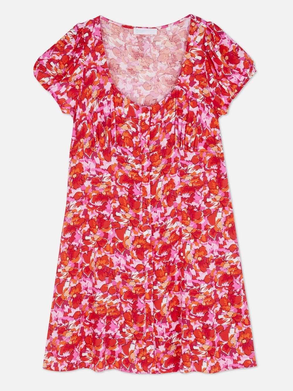 No hay nada más primaveral que un estampado de flores como el de este vestido. Te sorprenderá lo liviano que es y el detalle de sus botones, integrados a la perfección en el estampado. Sus mangas son ligeramente abullonadas, mientras que el escote es discreto pero lo bastante amplio para que no pases calor. ¡Y cuesta sólo 14 euros!