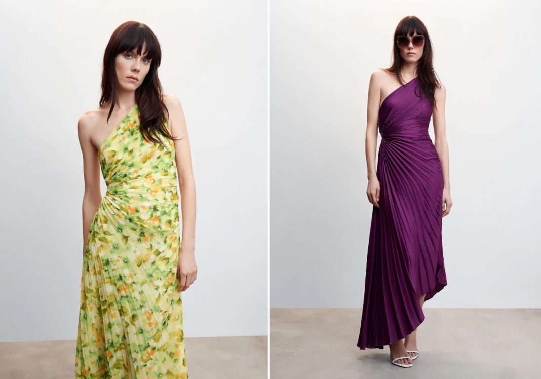 He aquí dos opciones imprescindibles. El modelo amarillo de este vestido tiene aires exóticos, más propios de una boda primaveral; mientras que la opción en morado transmite más elegancia para eventos formales. Ambos colores se adaptan a una prenda de corte midi, con abertura lateral para que se vean tus piernas y un tejido fluido y plisado. Los dos modelos cuestan 89,99 euros, y se pueden escoger en tallas XS a XL.