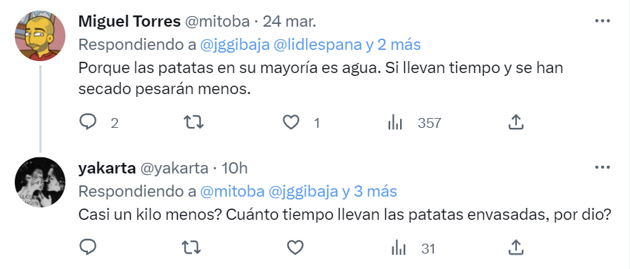 El presunto engaño de las patatas tuvo lugar en una tienda de Torrelodones, tal y como este cliente trasladó a la cuenta oficial de Lidl en Twitter. Al mismo tiempo otro tuitero le daba una explicación a lo sucedido: como las patatas contienen gran cantidad de agua, al cabo de un tiempo se secan y pesan menos. Al cliente que hizo la denuncia le chocaba este razonamiento, ya que la diferencia es de casi un kilo menos a lo marcado. ¿Pero qué dice la ley al respecto?