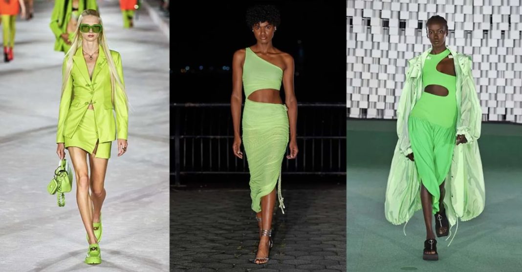 Esta tonalidad está presente en muchas colecciones de primavera-verano, como las de Versace, que apuesta por total looks en verde neón, incluyendo zapatos y gafas. Blumarine sigue la misma tendencia, pero en clave de los años 2000. Además, muchas marcas han demostrado que el verde neón puede ser elegante en vestidos con diferentes estilos, como los plisados de Valentino, los hombros caídos de Badgley Mischka o los volúmenes con cut-out de Naem Khaan.