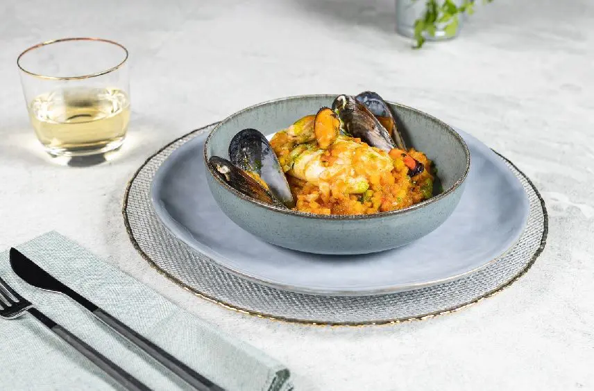 - En una cazuela, añadir el aceite de oliva, pimenton, azafran, chile rojo, cebolla, hinojo, zanahoria, patatas, tomates y dejamos sofreir. añadir el agua y cocinar durante 15 minutos. salpimentar. incorporar el skrei y cocinar entre 6-7 minutos. añadir los mejillones.