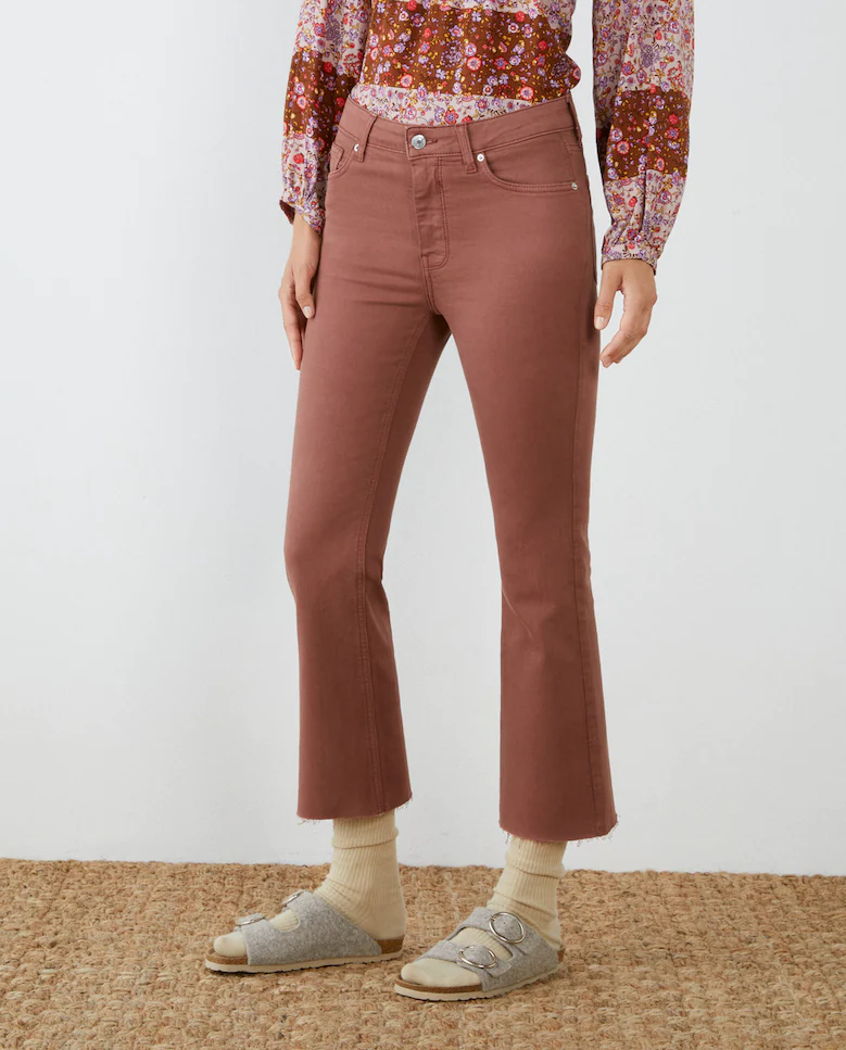 El skinny jean ha dejado paso (al fin) a otro tipo de cortes y estilos como por ejemplo el vaquero campana. En El Corte Inglés podemos encontrar este diseño ligeramente acampanado y tobillero, con los bajos desflecados. Se trata de unos pantalones informales y al mismo tiempo muy estilosos, para combinar con tus prendas más primaverales. Tienen un 2% de elastano para un ajuste óptimo al cuerpo y están disponibles en color verde pardo y en marrón. Tiene un 70% de descuento y su precio se queda en 11,99 euros.