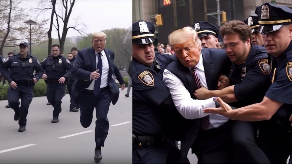 La imagen que se ve ahora mismo en pantalla de Donald Trump parece real a simple vista, así que se ha vuelto viral. Sin embargo, si nos fijamos bien, podemos notar algo raro al fijarnos bien, dándonos cuenta de que es falso por ciertos detalles. La realidad es que estas imágenes fueron una broma de Eliot Higgin de Bellingcat, que usó una IA para crearlas.