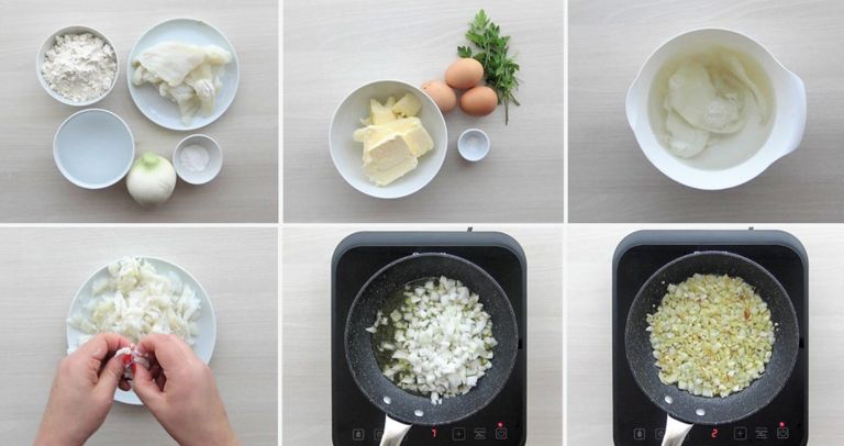 4Preparación de los ingredientes para los buñuelos de bacalao de Semana Santa